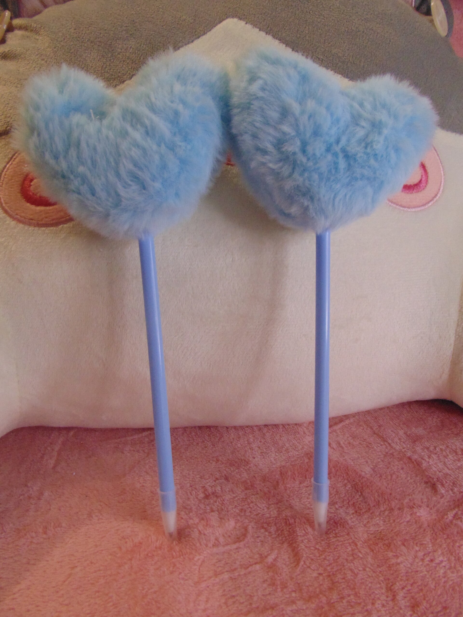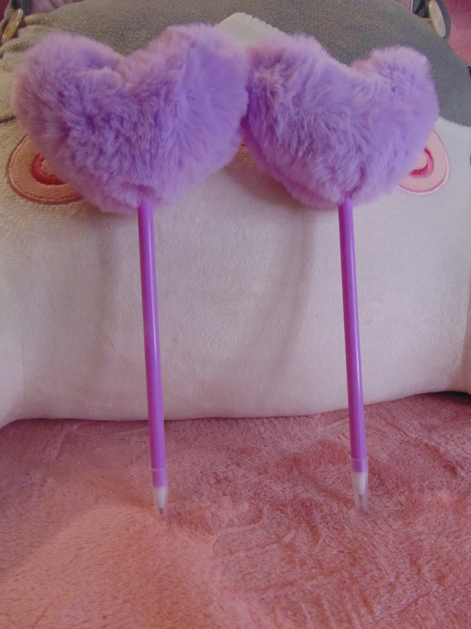stylos à bille en forme de cœur en fourrure.